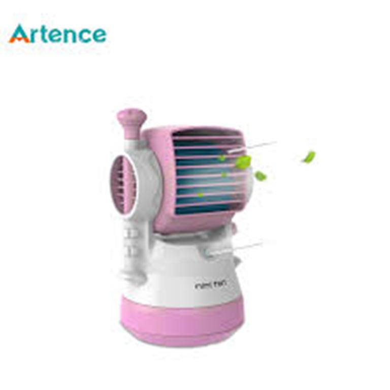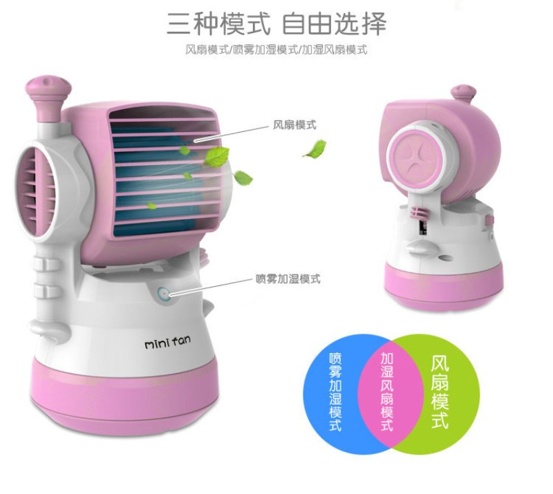 – ?Easy use. the mini fan is powered by a usb plot. Just put in the usb port, pull the button on the back of the misting fan, the wind will start to blow. If the misting water function needed, you can add water in the bottom, and then press the spring on the right side of the fan, the water will come out. About the detailed use steps, please refer to the instruction on the package box.