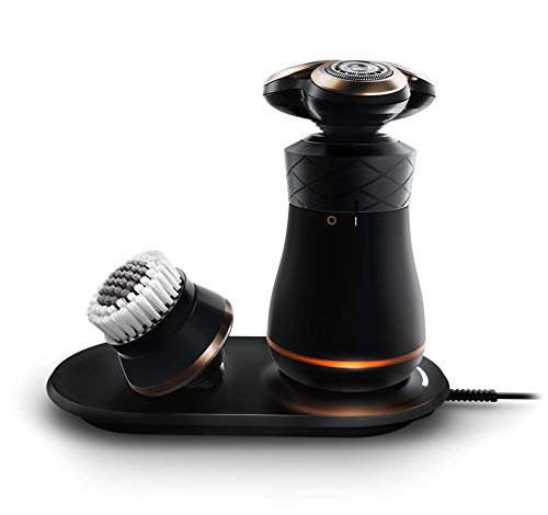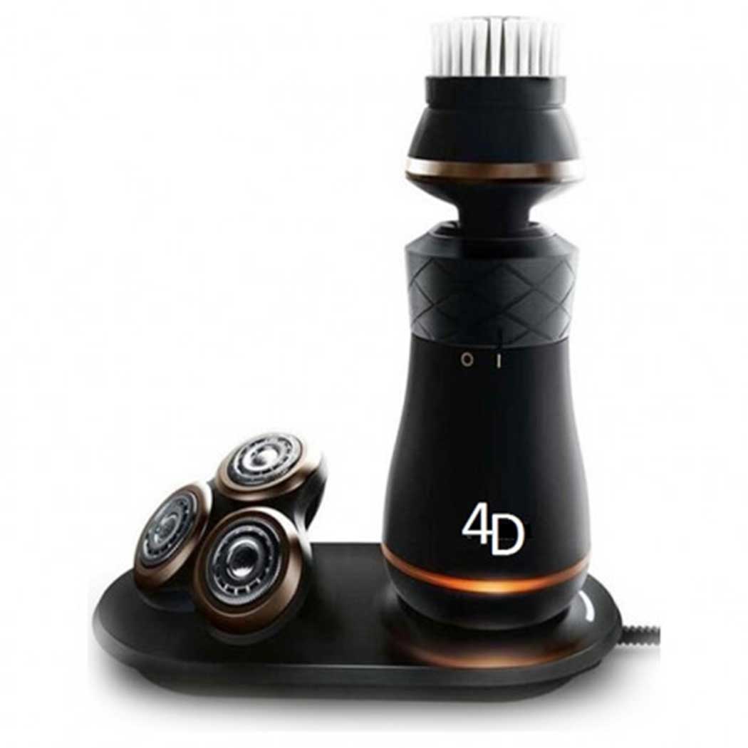 - 2 in 1 4D five blade electric men’s shaver and face cleaning brush rechargeable floating beard razor with charging stand washable