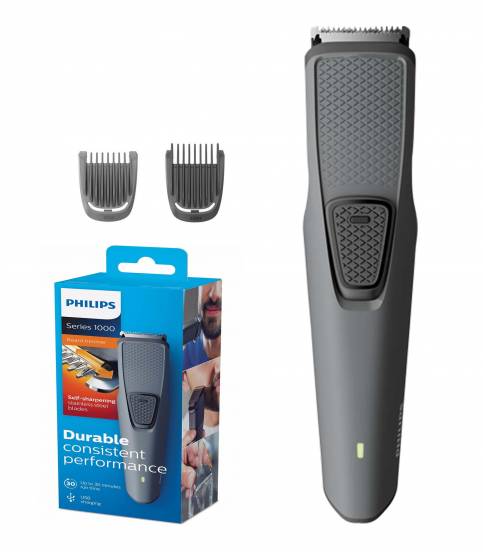 Get a perfect yet protective trim, time after time. The trimmer’s steel blades lightly brush against one another, sharpening themselves as they trim so they stay extra sharp and effective as on day 1. Charge your trimmer for 8 hours with your USB cable to get 30 minutes of cordless use. This beard trimmer comes with a USB cable for more flexible charging via your computer or any USB adaptor. The adaptor is not included recommended adaptor Philips HQ80. This trimmer comes with a battery charging indicator which lets you know with a green light that your device is charging.
