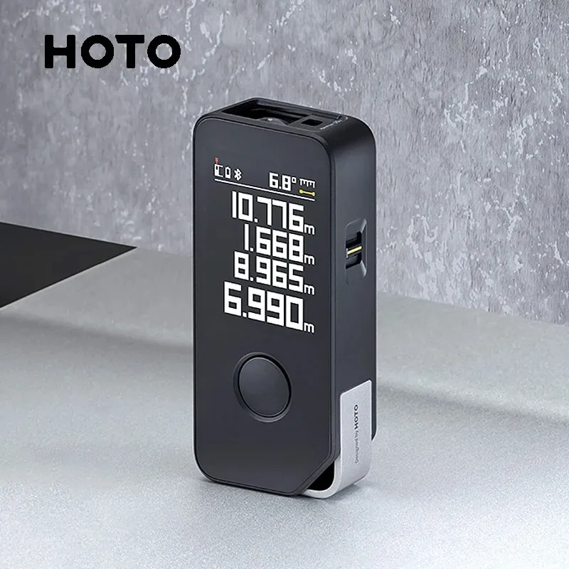 This Xiaomi Hoto HD50 is a photo laser distance meter that can measure distances up to 50 meters. It has five measurement modes: distance, angle, height, area, and a virtual ruler. All of these are displayed on a 1.8‑inch LCD color screen that ensures clear readability in various lighting conditions. It also connects to your phone via Bluetooth. This lets you record measurements right away, create floor plans, add notes to photos, and easily share them. It uses a rechargeable lithium battery that can be powered up using a USB-C port. The battery can be used to take up to 1,500 to 2,000 measurements before it needs to be recharged. The Hoto HD50 device will turn off automatically after 180 seconds to save energy.